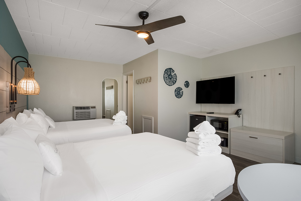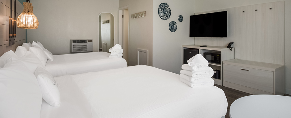 Hotel Cabana is the ideal hotel among Wildwood hotels for a family, couple, business or group getaway. As the sun goes down, soak up the sunset and breathtaking views from our roof top oasis. You will discover the Hotel Cabana features modern, well-appointed spacious guest rooms and suites. The Hotel offers a beautiful retreat that blends the Wildwood beloved vibe with modern-day style and amenities. As an added bonus, every guestroom includes a microwave, refrigerator, wifi access and plush bedding that enables you to relax after your fun filled day.