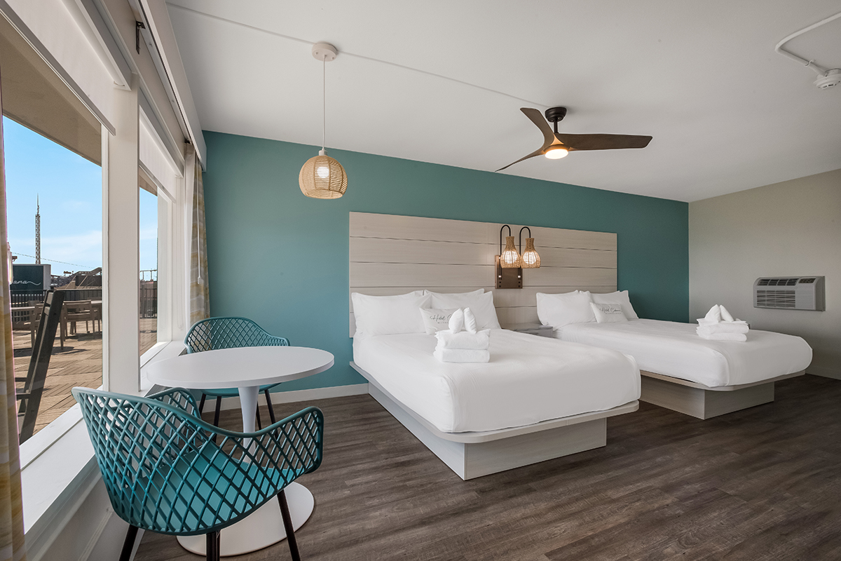 Hotel Cabana is the ideal hotel among Wildwood hotels for a family, couple, business or group getaway. As the sun goes down, soak up the sunset and breathtaking views from our roof top oasis. You will discover the Hotel Cabana features modern, well-appointed spacious guest rooms and suites. The Hotel offers a beautiful retreat that blends the Wildwood beloved vibe with modern-day style and amenities. As an added bonus, every guestroom includes a microwave, refrigerator, wifi access and plush bedding that enables you to relax after your fun filled day.